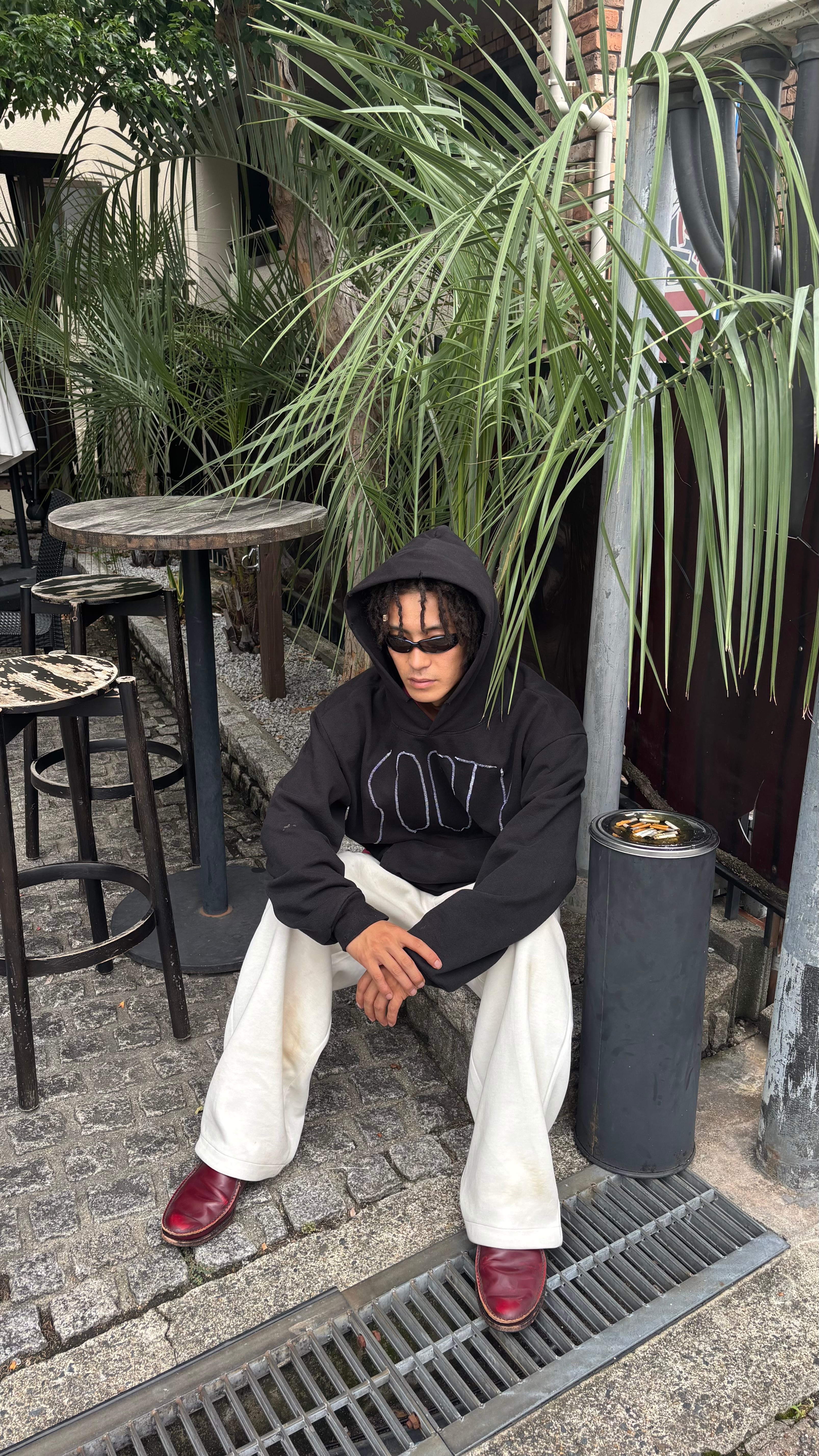 ロスアパの高い肉厚ボディに、フェードと、ボロ加工、刺繍をサンプルで施した、確実に世界に一つのパーカーです⭐️